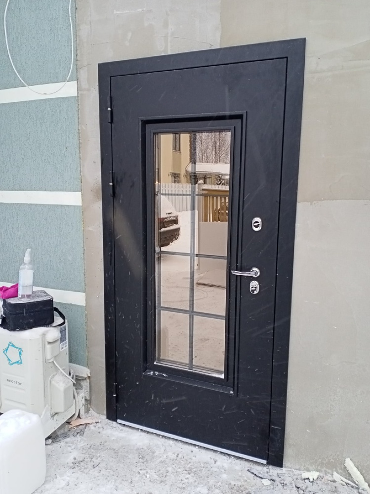 Отделка: «МУАР AKZO NOBEL RAL 9005» + грунт-барьер «AKZO NOBEL», трехкамерный стеклопакет, тонировка Бронза + ковка Британия
