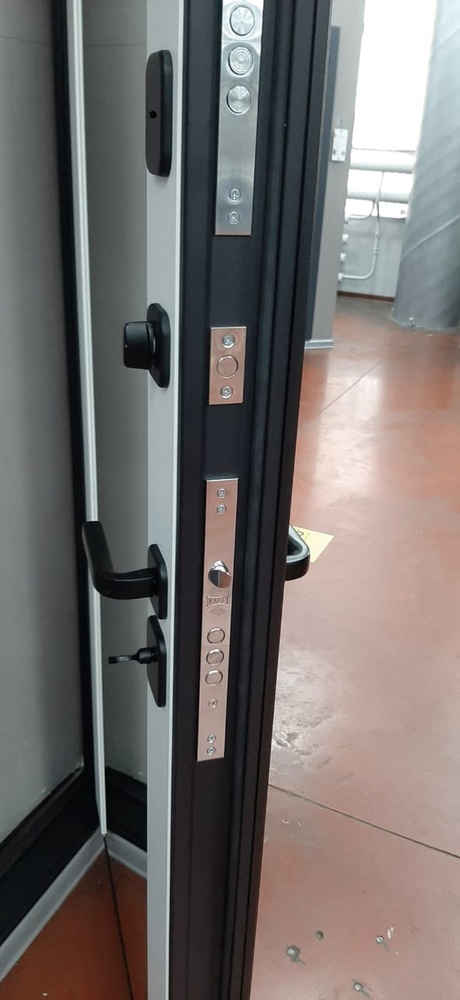 Усиление: семь усиливающих уголков и защитный карман для замков. Дополнительную стойкость ко взлому обеспечивают два противосъемных штыря.