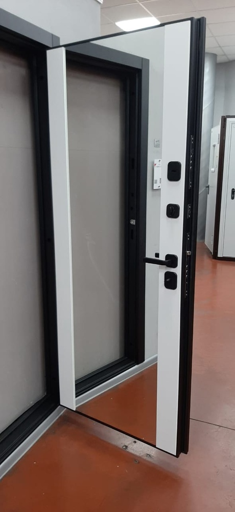 Отделка снаружи: Декоративная панель толщиной 12 мм с отделкой винилом и вставкой из нержавеющей стали «Black Mirror 10K».