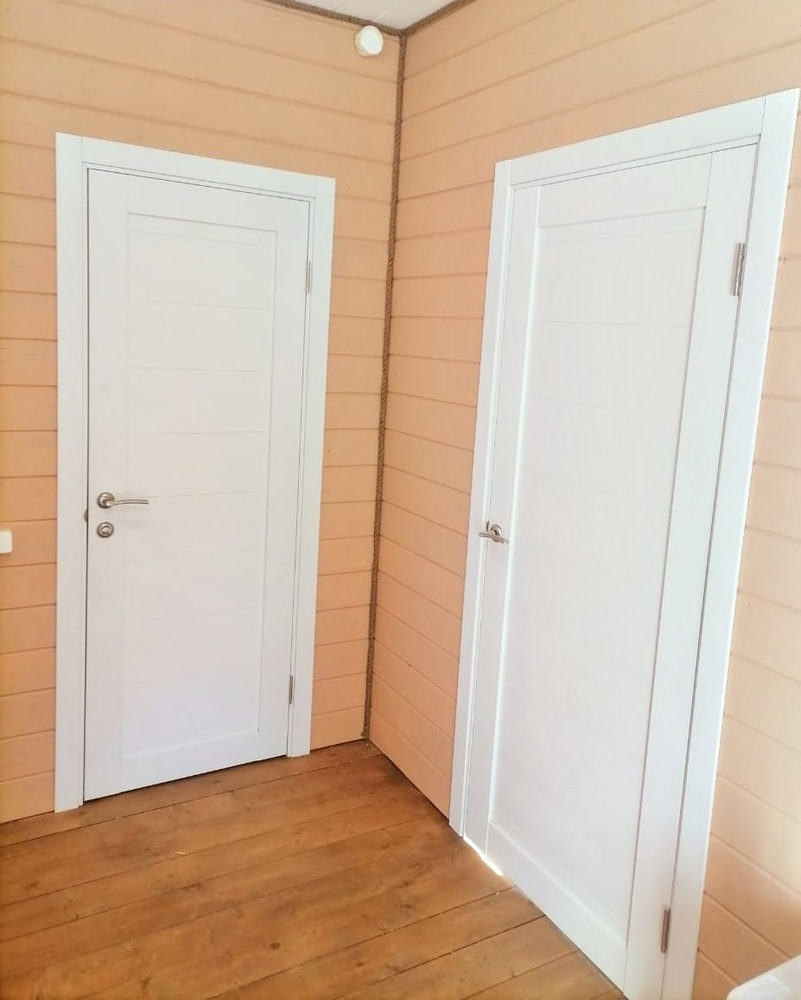 Рамочные (царговые) двери изготовлены из высококачественного соснового бруса и плитных материалов, без пустот. Бескромочная технология производства. Отделка осуществляется с использованием PUR-клея необратимой полимеризации. Крепеж из закаленной стали надежно фиксирует детали двери в 8 точках.
