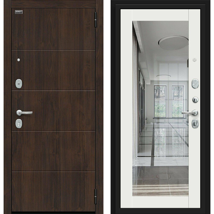 Отделка внутри: декоративная панель. Толщина 22 мм, Эко Шпон, зеркало Reflex.
