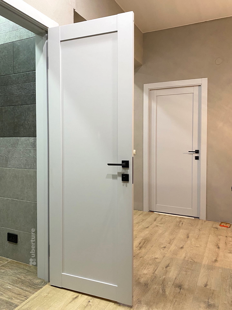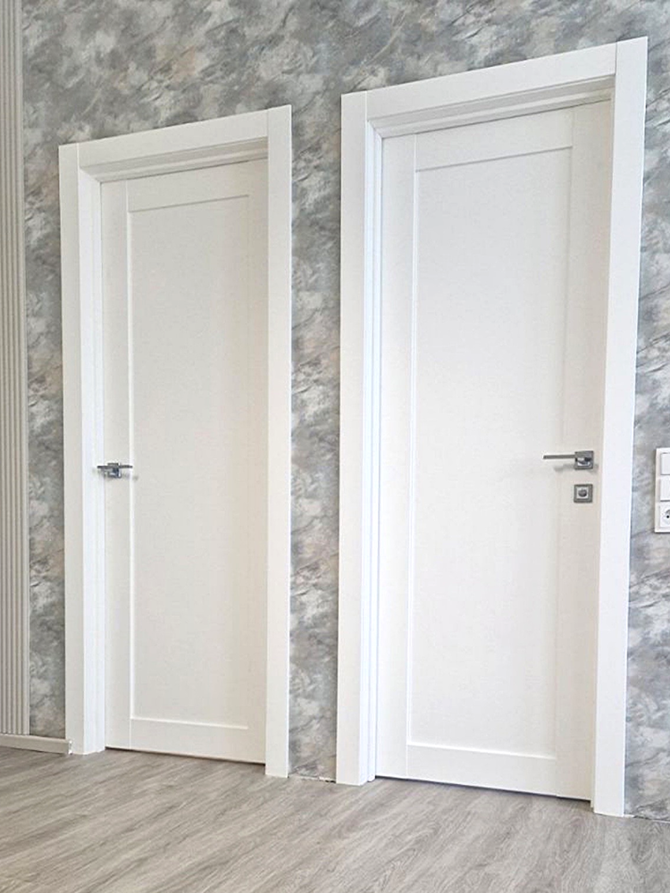 Стильные межкомнатные двери с гладким покрытием. Поставляются со стандартной шириной 600/700/800/900, возможно изготовление нестандартных размеров. Внутреннее наполнение: массив сосны + МДФ.