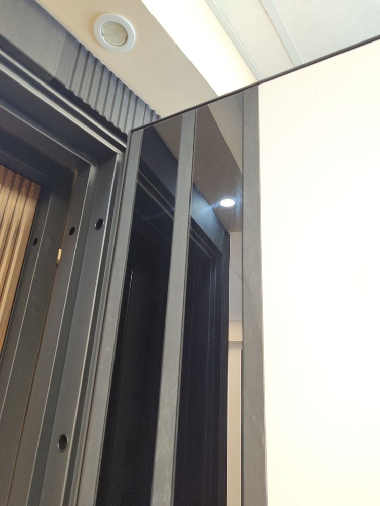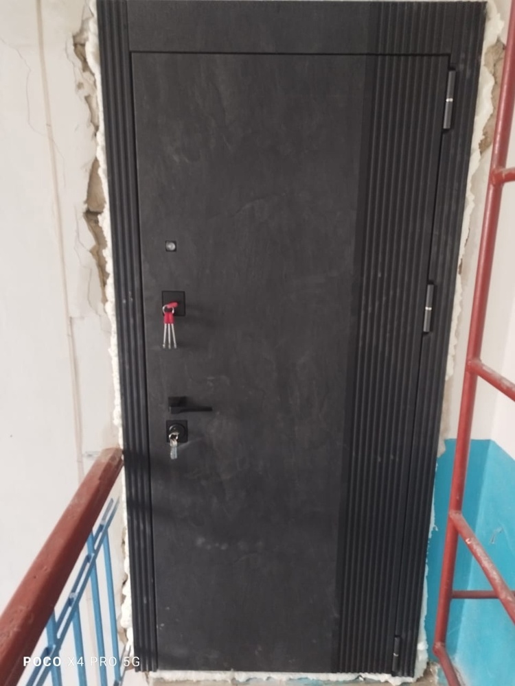 Тип короба: «Разорванный комбинированный» с утеплителем из каменной ваты и воздушной камерой, толщиной 125 мм, защита от холода и шума. Усиленный металлический бронекарман под ригеля замка.