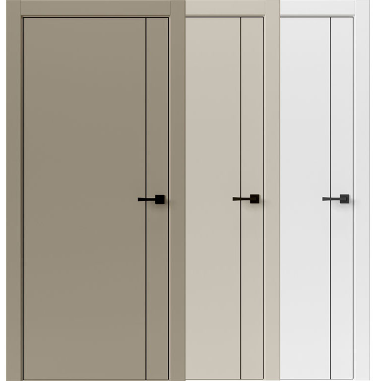 Стильные межкомнатные двери, которые выбирают дизайнеры. Три варианта покрытия: белый, бежевый, молочно-шоколадный ("мокко"). ABS плёнка на кромке подчёркивает геометрию двери и защищает её от повреждений в самом уязвимом месте.